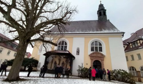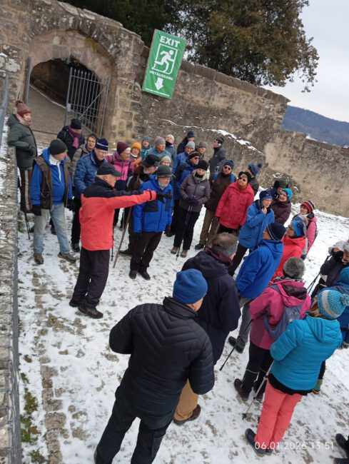Vom Stillaplatz liefen wir zum Burgsteig und genossen den herrlichen Blick vom ehemaligen Turnierplatz der Burg zum Massendorfer Berg. Die Wanderstrecke führte über die alte Güssübelvorstadt zum Galgenberg, der früher eine beliebte Rodel- und Skiabfahrt für die Sektion war.