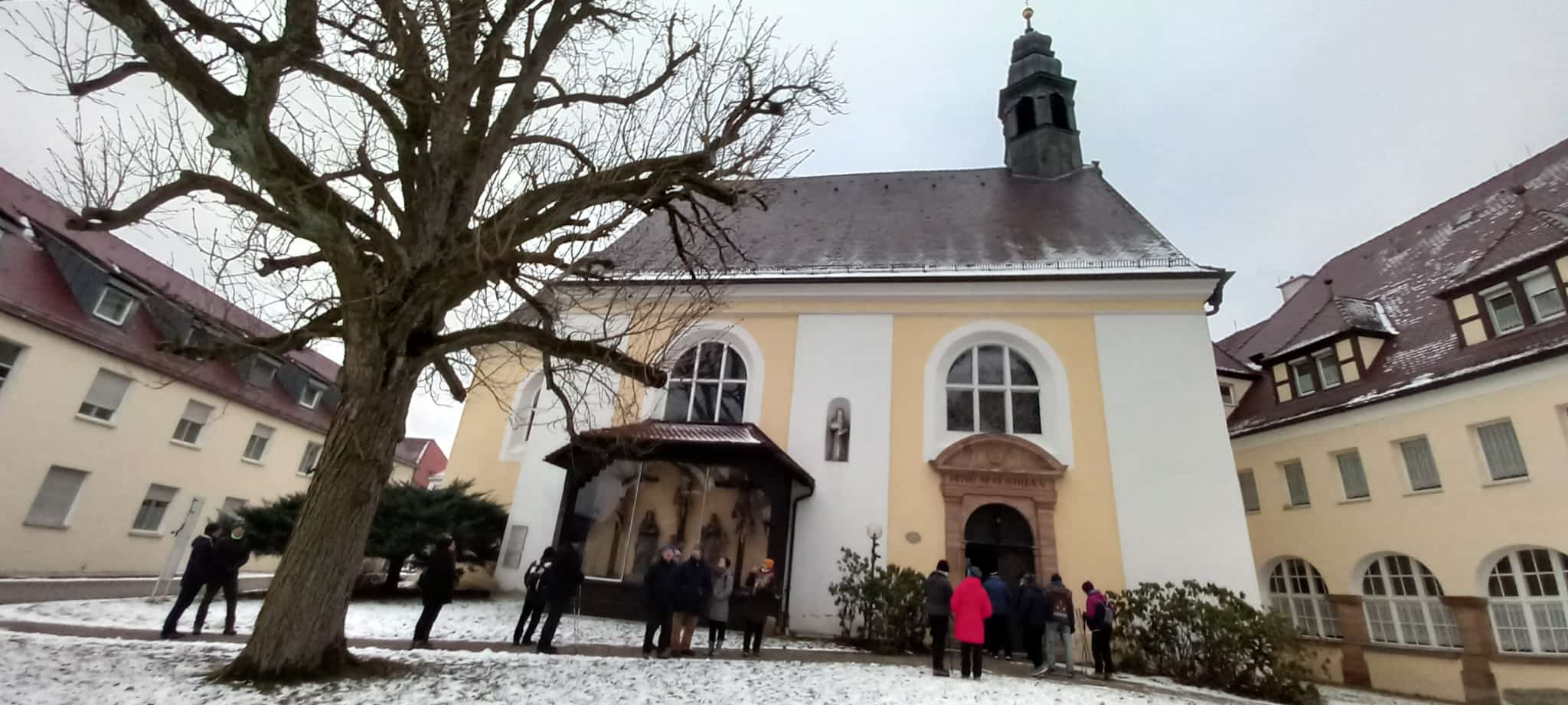 Durch Kleinabenberg gelangten wir zu einem Rast – und Aussichtsplatz, der wiederum einen schönen Blick auf den Abenberger Wald und das Kloster Marienburg bot. Unterhalb legte die Stadt ein Biotop für Amphibien und Eidechsen an. Über die Wiestaler Weiher gelangten wir zum Abenberger Wald und zum Caritas-Seniorenzentrum St. Josef. Im Kloster Marienburg besichtigten wir die Gruft der Augustinnerinnen (1488-1806) sowie die Stilla-Klosterkirche mit dem Grab der Gräfin Stilla, die aufgrund ihres hilfreichen Wirkens für die Armen und Kranken schon bald nach ihrem Tode als Fürsprecherin bei Gott von der Bevölkerung verehrt wurde und damit die Wallfahrten zu ihrem Grab begannen. Runterwärts liefen wir zum Stollenweiher mit der Stillasäule zur Werkvolkstraße und zur Wiesenstraße. Auf einem Gehweg gelangen wir zum oberen Stadttor und somit wieder zu unserem Startpunkt, so dass wir im „Garten Kreta“ einkehrten und das gute Essen und die angebotenen Getränke genossen sowie uns bei lebhaften Gesprächen austauschten.